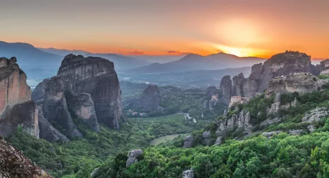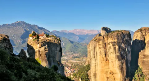 Meteora, een van de meest betoverende plekken in Griekenland, is beroemd om zijn indrukwekkende rotsformaties en de adembenemende kloosters die er op zijn toppen zijn gebouwd. De unieke kloosters bieden spectaculaire uitzichten over de omringende bergen.